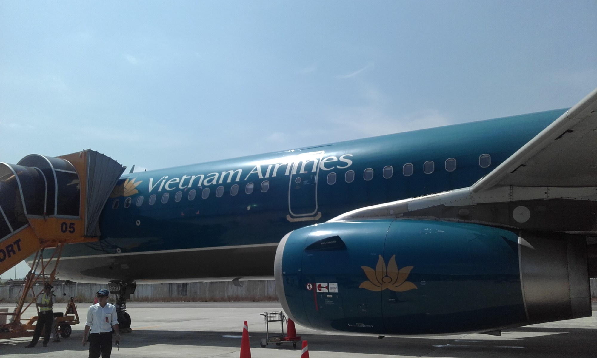 Finally on to the plane, and bugger me, we have the emergency row seats. We weren’t even asked this time; we were just given. I suspect this may be a western tourist thing, and perhaps also a Vietnam Airlines directive. Not sure, but it’s nice to have the extra leg room. As well as not having to put up with the person in front putting his seat back 30 seconds after he sits down.