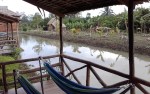 Back out on the narrow path; I’ll call it a path, because while it’s about the width of a car, it’s not really something I would call a road; and we turn right. A fairly narrow river, or canal, is on our left, and there are houses every so often on our right. There’s a few people around, along with the occasional motorbike or bicycle going past, as well as several dogs.