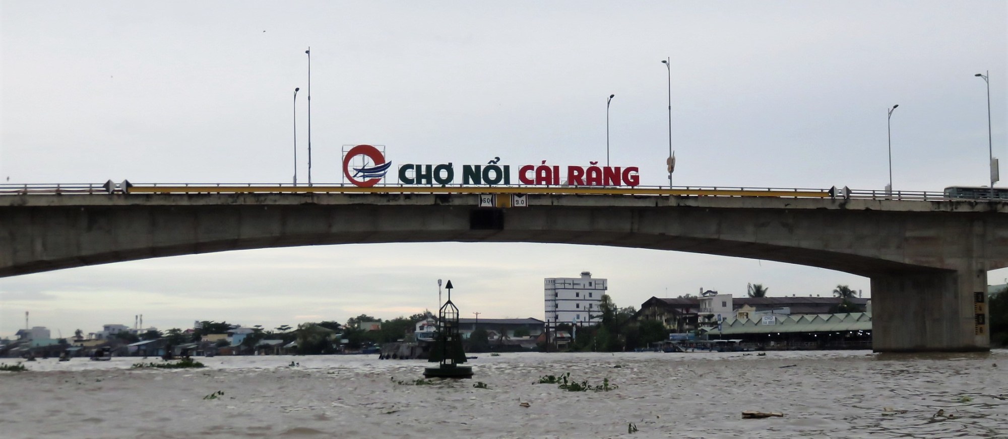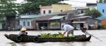 Pretty soon the lush vegetation gives way to the big city that is Can Tho, and we’re now onto the main river with the market up ahead.