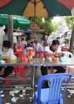 There’s a street food vendor next to us, and the girls running it are doing a roaring trade with the locals. Lisa always ‘requiring’ breakfast, is keen, but also a little apprehensive. Right at this moment, I can’t stomach the idea.