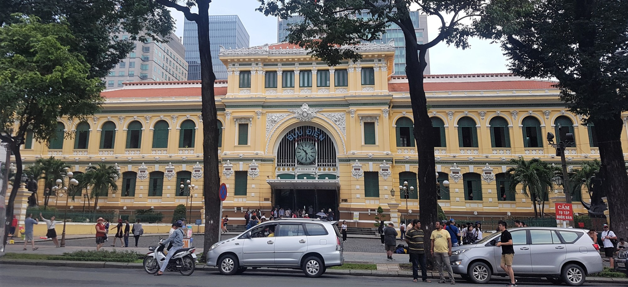 Into the Post Office, and there in front, under the watchful gaze of Ho Chi Minh, is a ridiculous number of tourists, doing what tourists do.