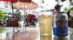 We take a seat overlooking the laneway, and our drinks soon arrive.  Real coffee, along with an ice filled glass, as well as a tra da (iced tea).  It was much needed, and it was nice to relax and cool down.  And while a little up market, the people watching was still pretty good.