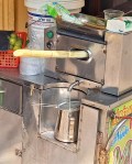 The sugarcane becoming sugarcane juice.