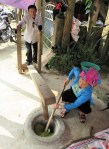 Toan pulls over for a closer look, and yep, they’re crushing, or maybe pulverizing, rice, which is green, and of the sticky variety.