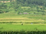 Out of Nghĩa Lộ, eventually, after taking a wrong turn, and once again into the countryside.  The scenery begins to change, namely the mountains, with large ones now being seen in front of even larger ones.  The locals are also different, with far more minority villagers around, along with their distinctive colourful clothing.