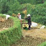 Threshing the newly picked rice.