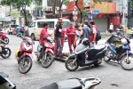 Outside the difficult goodbye is done, and then rather than go down the sedate path of ordering a Grab car, we take the option of the far more exciting Grab bike (22 000 Dong each).