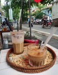Up to our café from yesterday, càphê nâu đá (19 000 Dong) for me, while Lisa once again goes with a coconut coffee (35 000 Dong).